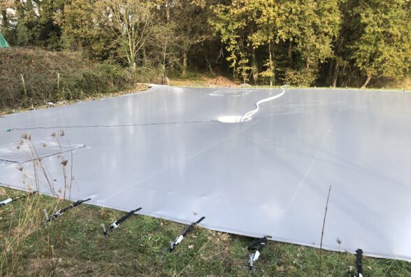 - Une couverture tendue pour fosse sur membrane avec bac de récupération des eaux